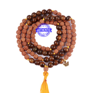 Name: Tiger Eye stone + Rudraksha Mala Configuration: 5 Mukhi Indonesian: 72 beads Tiger eye stone: 37 beads Making: Knotted in thread according to traditional style