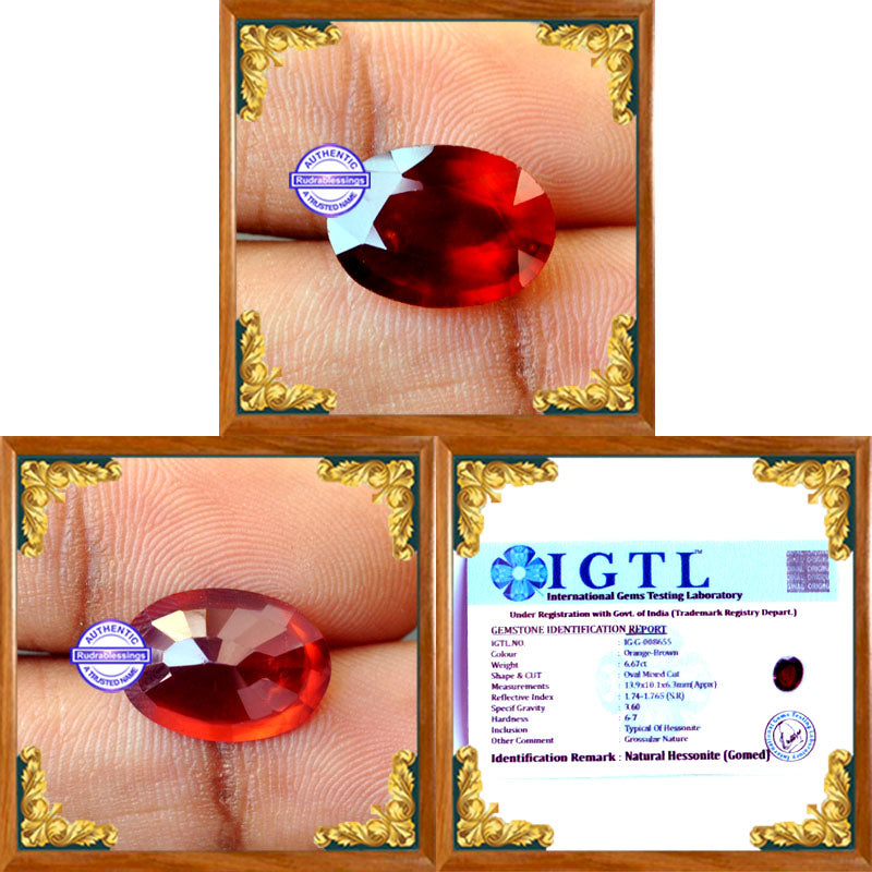 Purpose: The Hessonite garnet / Gomedh / rahuu is worn to reduce the malefic effects or increase the benefic effects of planet “ Rahu / North node / dagon's head” on the wearer