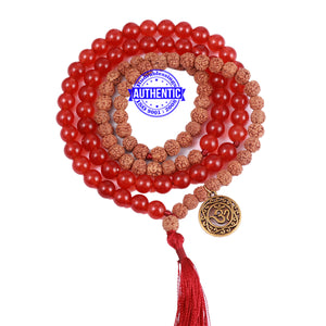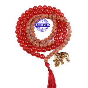 Red Aventurine Stone + Rudraksha Mala with Axe accessory